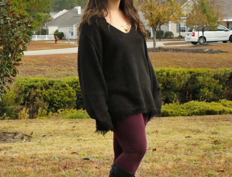 My style aesthetic is very bohemian/surfer chick. I’m obsessed with Free People and anything flowy and pretty. So when it comes to being comfortable I like to pair a high quality, unique piece like this sweater with a bunch of basics: i.e. leggings and boots. Make the special piece the star!