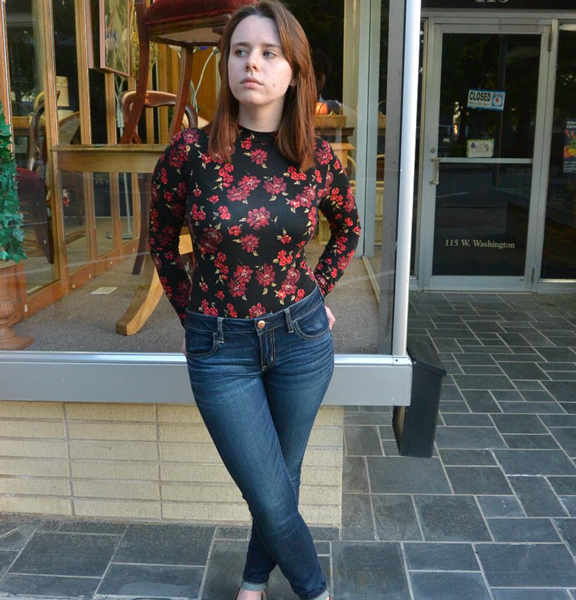 The outfit featured here is an ensemble that can be easily modified using items from any closet. The bodysuit I am wearing is a piece I ordered (or more accurately, convinced my boyfriend to order for me) online from Forever 21. I originally thought it was made with a mesh material, but was surprised, and eventually pleased, to find that the material is actually a lightweight stretch cotton. The floral print is a sweet nod to spring and warm weather but the black base color tones the energy down a bit. Bodysuits are great because they’re super easy to pair with other items, and they eliminate the repeated tucking in situation that shirts and blouses bring about.