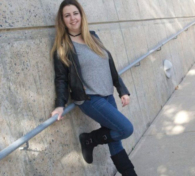 First off, my favorite parts of my look would have to be my black leather choker and my leather jacket. It gives just a hint of edge to make this outfit a bit more eye catching. I personally love the choker trend; it’s become a more stylish look in comparison to the stretchy chokers from the ’90s. Secondly, I am wearing one of my more flattering sweaters. With the v-neck, this sweater draws extra attention to the neck and so it is important to incorporate a necklace when wearing this style of sweater. Finally my pair of tall, flat black boots with buckles gives the perfect touch to this outfit.
