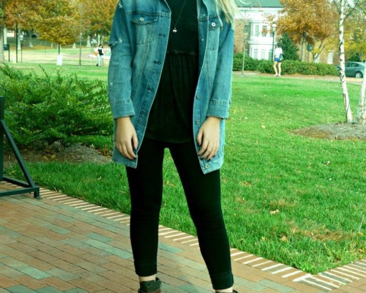 Living in an all girls hall is great, especially when there is a fashion crisis. The long jean jacket featured in this article was a recent impulse purchase which I bought on Thanksgiving at my local mall while deal hunting. The morning I wore this outfit I stopped into a few rooms and asked, “Is the jacket too much?” Many of my Fashionista friends confidently responded, “Yes, but it’s different.” Not exactly reassuring, however, the fact that I was inclined to ask others for their opinion on my outfit made me stop and think. I decided to wear the outfit to my two classes that day and I felt awesome about my choice. Fashion is more fun when it makes you challenge yourself and the more I challenge myself with my fashion choices, the more confident I feel in trying news trends or unusual pieces.