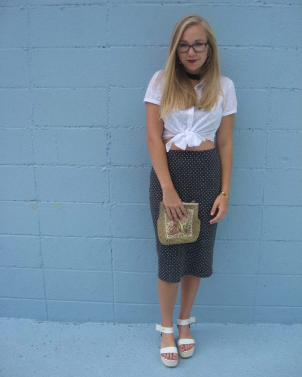 My white Steve Madden platform sandals are a major staple in my closet. Not only do they look amazing with nearly everything I own, but I love the extra height they give me—especially with longer skirts like this one.