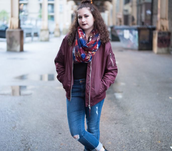 Happy fall everyone! As much as I hate cold weather, I do love fall fashion. (Pray for me as Chicago winter approaches; I’m shivering already.) Anyway, this has been one of my favorite outfits this fall. It really captures my style, and it has so many classic and versatile pieces, which I like to pair with other outfits, as well. Another thing I love about this look is all of the returning ’90s trends. Between the bomber jacket, Doc Martens, half bun and dark lips, this look has such a ’90s vibe to it that I can’t get enough of!