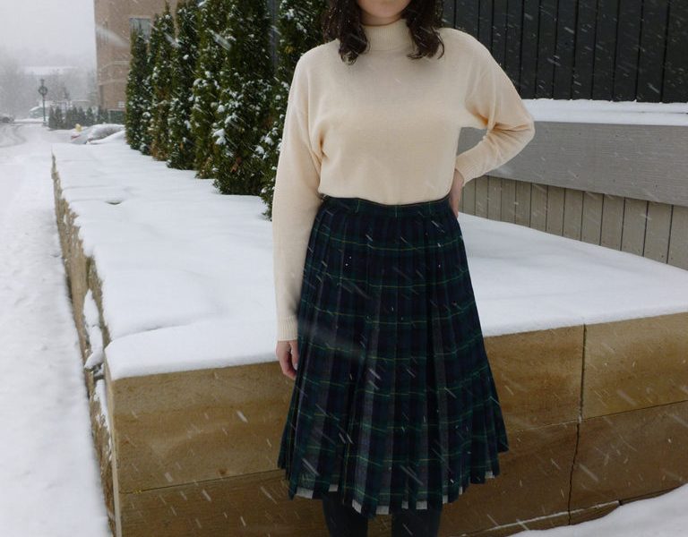 This vintage plaid skirt I am featuring is one of those items. It was passed along to me by the family of a friend because she thought a Fashionista would be able to appreciate it. She was right! This pleated garment, with a classic color palette and thick wool fabric, is all one could want for a family dinner or a museum trip during the holiday season. It has versatility due to the balance of structure and comfort. The ability to be worn on multiple occasions is a good quality to look for when shopping for new clothing.