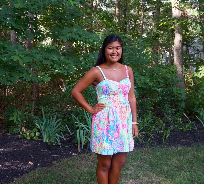 My outfit includes a Lilly Pulitzer sundress with wedges. To add to the look I have on two bangles and a blue stone necklace. I kept my lip color simple and wore a light pink lip gloss.