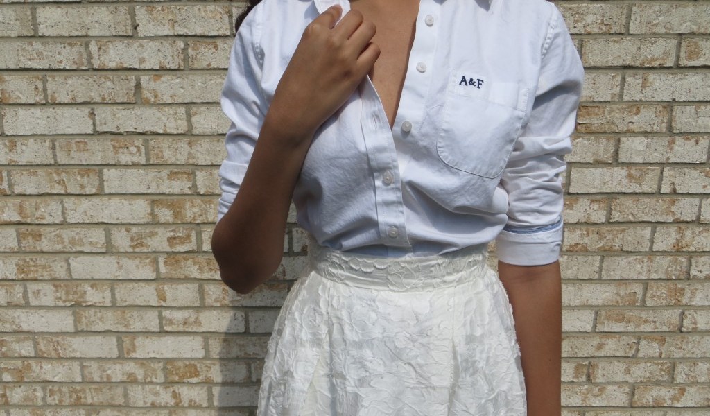 I absolutely adore kate spade new york, and after viewing the latest collection, I decided to try out the monochromatic look featured throughout the selections. I noticed that some of the tops paired with the skirts were collared, and I wanted to incorporate that into the outfit. However, I am not a fan of collars and wide short sleeves, so I took a button-down and tucked it into the full skirt. The high-waisted element added to the classic silhouette and also defined my figure. I paid homage to the florals and garden theme by choosing a skirt with a floral overlay just subtle enough to be noticed but not be the entire focus.