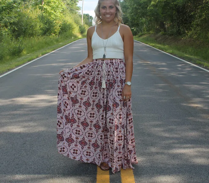 Get My Look: 1. Knit Crop Top 2. Flowered Maxi Skirt 3. Stacked Bracelets