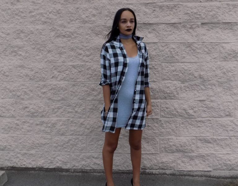 Get my look: 1. The dress 2. The lip 3. The chocker 4. Flannel dress