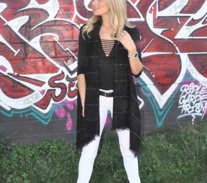 My favorite part of fall is being able to layer clothes. I think that the vest really adds dimension to the outfit. Otherwise, it would just be a regular black shirt and white pants ensemble. Adding layers is a great way to spice up any boring outfit!