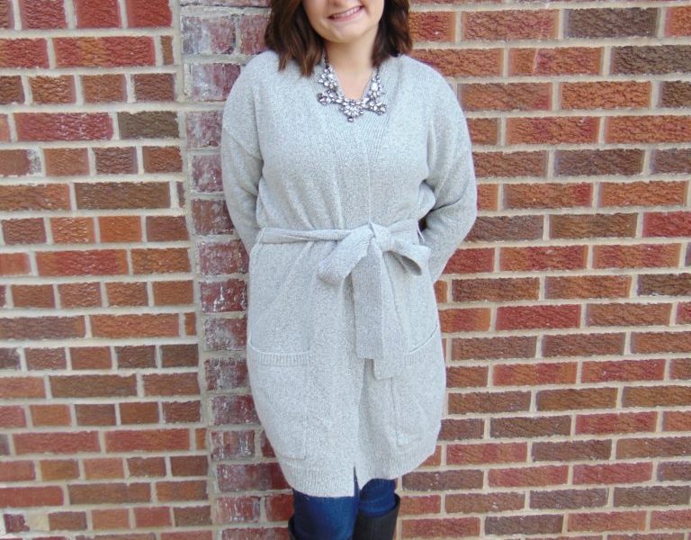 While this look isn’t as bold as I hope to get throughout 2017, it’s a tiptoe in the right direction. I paired dark wash jeans and black riding boots with a long gray cardigan. I think the belt around my waist makes this cardigan unique and adds to my outfit. I also added a statement necklace to make this look bold.