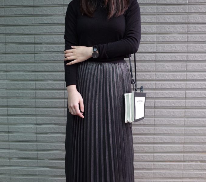 Black skirt makes it easy to pair up with any kind of tops, yet I decided to add another layer of black to my top. While the bottom is loose already, I chose a tight top and picked a sweater that shows the body’s curves.
