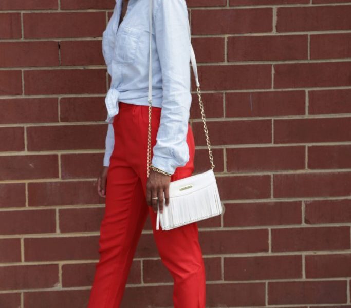 I was aiming to create a interesting and subtle look with red pants and simple top. I added the heels to elevate the look a tad bit. The resort 2017 runway collection by Natasa Cagalj had many bright colored pieces but the style of the item was very simple. The Purse I added was a simple Betsy Johnson fringe purse that didn’t take away from the overall look.