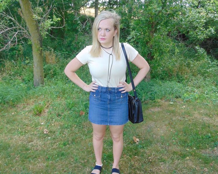 I was definitely shopping on a budget for this one, as my whole outfit only cost me $9! I get it, many people have a hard time shopping from a used clothing store. For those of you that are more comfortable shopping online, Forever 21 is always my go-to! They carry quality clothes, at a very reasonable price. They carry a denim skirt that is almost a replica of mine.