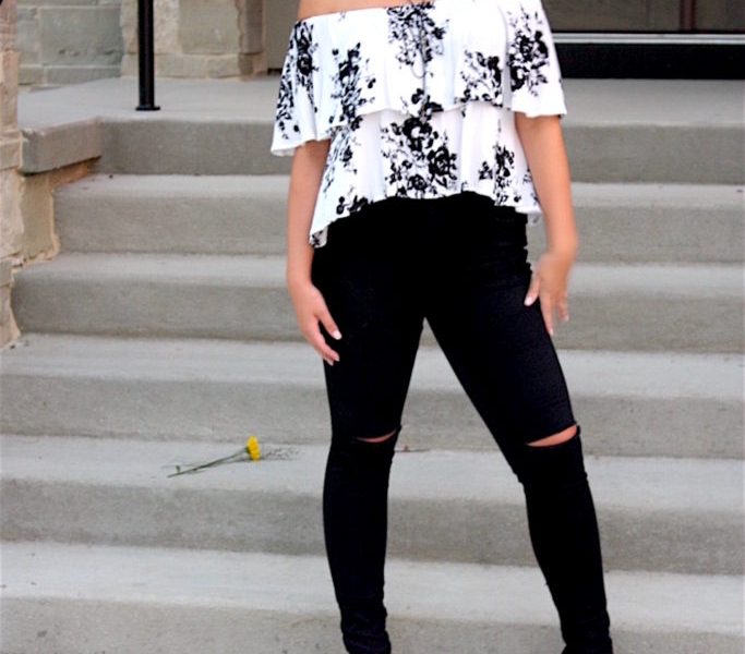 My outfit includes a boho floral top by PPLA from a local boutique called, Forever Faithful. My lace-up heels by Gianni Bini add another girly touch to my look. The block heel style of the shoe adds stability and is currently trending everywhere! These two pieces play on my sweet, sensitive side. To spice things up, I chose to wear these ripped up jeans in black. Not only are these jeans extremely comfortable and stretchy, but they are also very flattering. They are definitely a staple piece in my closet. An ode to the ‘90s grunge trend is by accessorizing with black chokers. Notice that one choker is floral lace while the other is metal beads and suede. These pieces reflect the edgier side of my closet and perhaps my dark side in general.