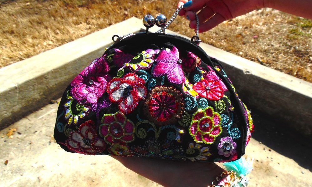 This collective purse is embroidered with several colors of delicate pieces of thread. Relating back to the neon pieces seen in the Chanel collection, the different shapes and sizes of the embroidered flowers on my bag are eye-catching in their own unique way. The purse is fastened by a kiss lock seal and a tiny silver chain to hold onto. Whether I want to use this purse for a special evening out or a stroll around town with my gal pals, this purse serves as a bold statement day or night!
