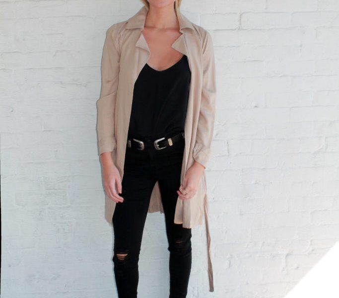 Beige, black, fitted, loose, crumpled or not, the trench coat has been all of the above and so much more, while remaining a staple piece for every Fashionista. The trench has made a quite a comeback in fashion over the years, but this time, it is softer and more feminine. I decided to pair my trench with all black for a minimalist, chic look. If they invent a darker color, let me know. I’ll probably fill my entire wardrobe with it. I added this bulky silver buckle belt to break up my all-black ensemble. I’m really loving pops of neutral this fall, and in my opinion, black and tan is the perfect fall/winter color combination. My distressed jeans and lace-up flats give this look dimension and texture. It’s perfect for job interviews or even just a coffee date with a friend. For a nighttime look, throw this trench over a slip dress with thigh-high boots. I’m definitely looking forward to coming up with different ways to style the trench coat this winter!
