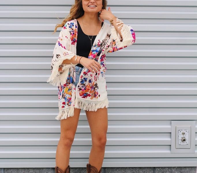 Summer concert season has finally arrived! Every fan is into something different when it comes to a music festival, but for me, it was a country music kind of night. This event is usually the highlight of my summer because what is better than seeing some of your favorite artists play live while enjoying it outside in the sun (hopefully) with your best friends? For occasions like this, it’s nice depending on what the temperature is to style your look with a kimono. I love this layer mostly because it is a super light and loose fitting robe that is easy to pair with any plain T-shirt or tank top.