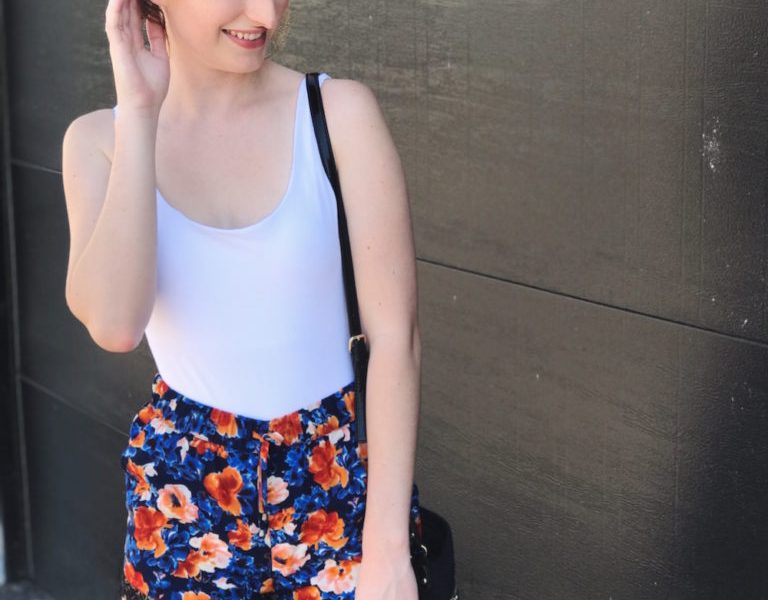 A solid-colored one-piece is the easiest thing to transition into regular clothing. Fabric floral shorts and messy hair complete the look giving it an effortless feel. With a piece as simple as this one, try even a skirt and heels to dress it up for a night out. The possibilities are endless with a white one-piece.