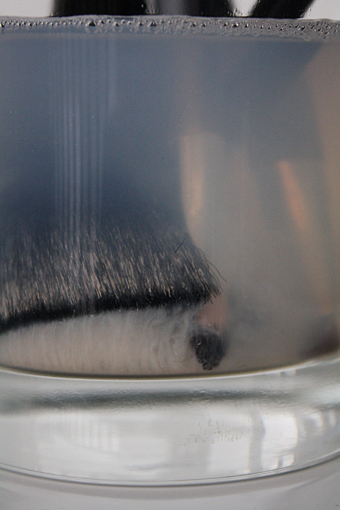 Swish the brushes in the water to remove the majority of product.