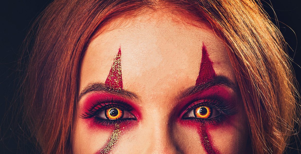 When many think of clown makeup it’s usually some variation of white face paint and a red nose. But, clown makeup can be simplified and made fun (or even spooky)! The above clown looks can be done with not just makeup, but body paint as well. If you don’t have body paint that is suitable to be put on your lips use pink or red lipstick. Use a makeup brush, a q-tip, or your finger to apply the lipstick and smear it without wasting a lot of product.