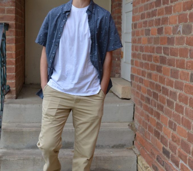 You can bring this Fashionisto’s style into your wardrobe by layering a button-down shirt with a white T-shirt underneath. Finish off the look with khaki pants and boat shoes for a great back to school look.