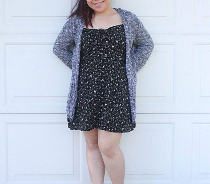 This Fashionista’s outfit is perfect for any day of the week and when your traveling. If you’re a person whom doesn’t wear much floral, a black floral dress is a way to go. Black is a neutral color and with the small floral prints, it’s perfect because the floral prints are not that big or bold. Keeping the neutral color look, she threw on a gray cardigan that has a hint of black and white thread in it. She finished off her outfit with nude lace up sandals. Not only do the shoes give her height but also they elongate her legs. This outfit is simple and girly—great for going out to brunch with families and friends.