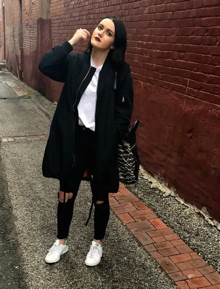 This look is by far one of my favorites. I’m the kind of person who has 10 plain white T-shirts, one too many pairs of white sneakers, and an expansive denim collection, which makes putting together an outfit composed of nothing but basics a pretty no-sweat task. If you’ve read any of my other articles, you’ll have caught on to the fact that I’m pretty devoted to Madewell denim. This pair of ripped skinnies has become like a second skin to me, it’s almost a little concerning how much I wear these babies. Again, this was a day I was running majorly late to class (oops), so I opted for simple and quick. I threw on one of my many white T-shirts, this time one I picked up in the mens section at Rag & Bone. I always shop in the mens section.