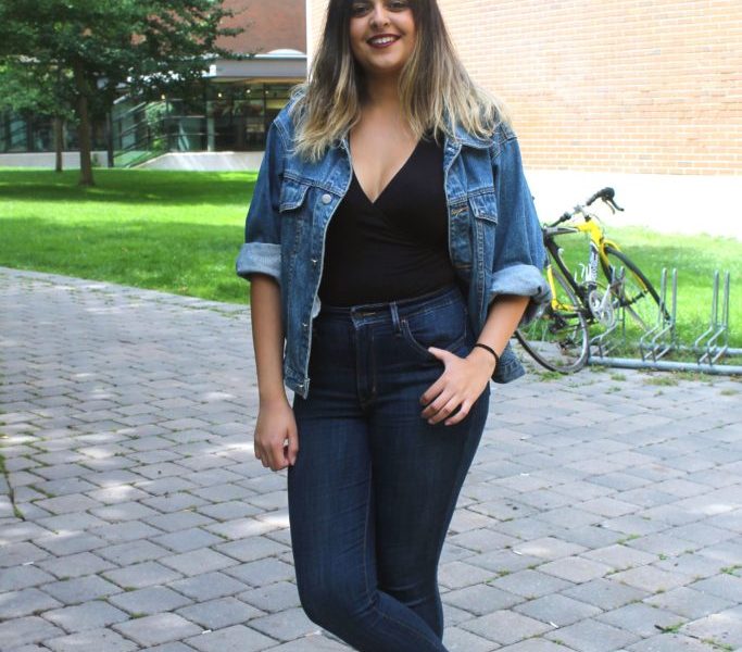 I caught up with this fabulous Fashionista as she was exiting the lab—where, by the way, she manages work on an evolutionary genetics project; pretty impressive right? She was looking every bit the epitomy of comfort and style. Rocking this denim-on-denim ensemble, she paired her look with a black body suit, white sneakers and topped off with a stunning red lip by MAC; this Fashionista looked super cute and ready to get things done. But whether it’s spending countless hours hopping from task to task at the lab, pounding the pavement to get from class to class or getting to those extracurriculars after it all, quick and easy ensembles like this one are the way to go.
