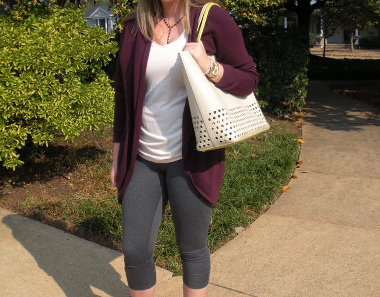 This Fashionista certainly blends function and fashion for her busy day on UGA’s campus. With a pair of cropped gray leggings, a blush tank top and an oversized, maroon sweater, this Fashionista feels comfortable and ready for whatever her day may bring. The Fashionista’s Nike running shoes, featuring a fish-scale design, allow her to walk all over campus efficiently, while looking cute and sporty. Additionally, her layers give her the ability to take off her sweater and accessories to get a workout in at the Ramsey Center–UGA’s home to recreation and fitness.