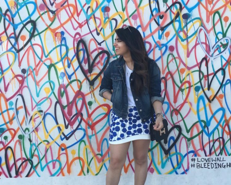 This Fashionista keeps her outfit classic and comfortable and perfect for an Instagrammable snap in Washington Square Park. Starting with her top, this Fashionista uses a simple white tank to add a light and airy touch to her look. You could easily get one of these from a local thrift store or probably the back of your closet. She pairs this shirt with a cute, floral skirt. The length of the skirt  isn’t inappropriately short for class and the blue in the skirt adds a pop of color. Her shoes match the look perfectly as she uses a classic, solid color. The practicality of sandals over heels makes it easy for this Fashionista to move from class to class. She finishes off the look with a denim jacket which is perfect for when class gets cold.