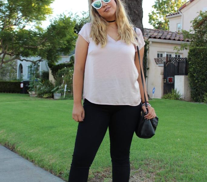 Although a classic white shirt seems like the perfect option to wear everyday, it is better to mix it up and have people guessing what you will wear to class. The Fashionista did so by choosing to wear a pink T-shirt from H&M. H&M has one of the comfiest T-shirts and you can simply purchase them there. Wearing different colored basic T-shirts will help keep your outfit looking trendy and unique.