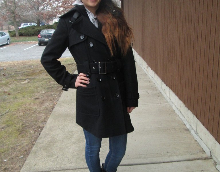This Fashionista values the importance of an elegant look while staying warm during the winter months. Her belted peacoat is a fashion staple that emanates class. The belt on the chic coat accents her waistline. When compared to a down jacket, her coat enhances the ensemble rather than solely functioning as a source of warmth.