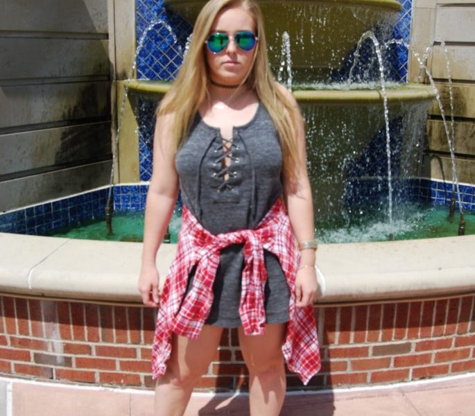 This Fashionista is concert-ready in a trendy lace-up dress with a choker for an added edge. Concerts can go from hot to cold depending on how crowded the area is and time of day, so it’s best to have a flannel conveniently tied around your waist. If it gets chilly, all you have to do is untie it and put it on.