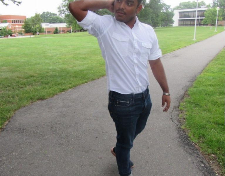This Fashionisto surely popped his white collar, and this white collar was surely working it….get it? White collar. Okay, corny i know. The Fashionisto also paired a vintage, silver men’s bracelet from Urban Outfitters, that added a touch of evening to his look! His outfit can clearly go from day to night because the white color is for daytime and the silver bracelet and shoes also say “I’m ready to go to dinner.” The Fashionisto had a lovely time walking around campus, and he mentioned to me that he was going out with friends at night! He doesn’t even have to change later on. Perfect, don’t you think? His outfit states preppy and ready for any time of the day because jeans are a classic, and so is white. Don’t be afraid to pair a white button-down with any shade of color pants!