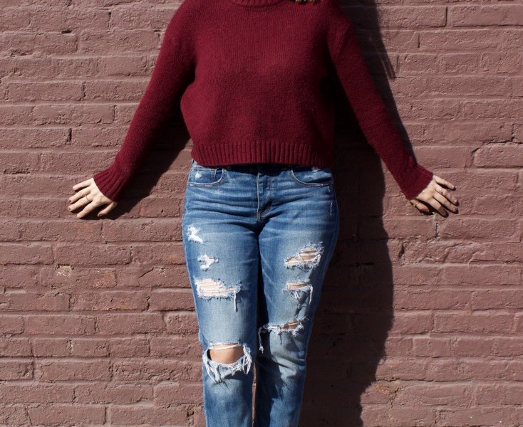 This Fashionista is a style innovator, who wears clothes that become popular on campus shortly after wearing them. Her outfit this week was the best mix of the cutest styles on Instagram with her own personal twist. She always dresses boldly and incorporates the best variety of warm hues to create a timeless autumn aesthetic. This look features Chelsea boots, distressed jeans and an ultra-soft wine-colored turtleneck sweater. The cozy sand-colored coat finishes off the look for the days when it’s just a bit too chilly on campus. Any York College student knows that a pleasant sunny day can turn into the most frigid day ever when the wind kicks in.