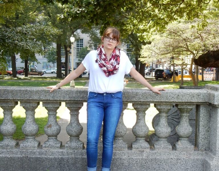Decked out in a twist of a take on a white T-shirt and jeans, this Fashionista is bringing West Coast style straight to Chicago. The white T-shirt and dark wash jeans are the building blocks of this outfit. A great staple addition is the circle scarf with fringe, perfectly tying the outfit together. The scarf is a great way to remain trendy and chic while remaining practical. Finishing everything out, the brown belted boots give the outfit the right amount of timeless-chic for a college appeal. This Fashionista is ready to finish the semester in style!