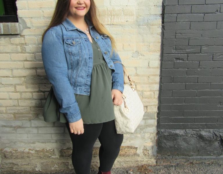 This Fashionista definitely knows how to dress for a long day in a stylish way. First, she’s got on her trusty leggings to keep her comfortable all day long. She’s successfully dressed them up by pairing them with a flowy, olive green blouse and statement necklace. Layered on top of that, this Fashionista grabbed her well worn denim jacket. This item is a staple in any wardrobe because it’s comfortable and assists in making any outfit more casual. I would argue that the cutest part of this Fashionista’s outfit are her maroon booties with gold detailing. They add a serious pop of color and personality to the ensemble without being too uncomfortable or hard to walk in. This Fashionista brings the look together with her maroon lipstick and neutral toned bag big enough for all her school supplies.