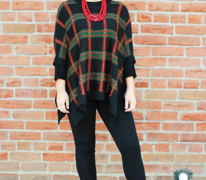 This Fashionista was on top of things and went all out for the holiday theme. Rather than going with the usual ugly Christmas sweater theme, she switched it up and was definitely the center of attention. In her outfit for the holiday dinner, she is wearing a festive poncho with deep side slits, black leggings, black leather booties with lace-up details on the side, and, of course, red chunky statement jewelry. There is no doubt she will survive the 100 questions from family members about her life away school while looking flawless as usual.