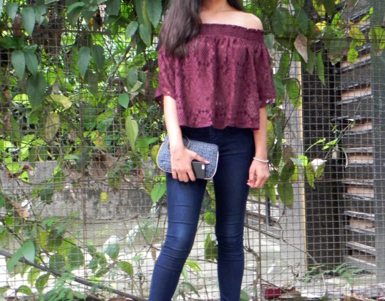This particular outfit is very trendy and simultaneously brings out the Fashionista’s personality, which is what appealed to me. It screams strong, mature and feminine. The off-shoulder lace silhouette of this Urban Outfitters top is the right amount of formal and casual. Though a very ’50s option, it does have character and is apt for a creative based internship. WGSN states that the off-shoulder trend remained in the spotlight for spring/summer ’16 with designers giving it a relaxed silhouette and a bohemian mood. This high-rise skinny jean from Urban Outfitters is a classic option which makes the outfit more casual. When paired with tan wedges, they lengthen the legs. This outfit has minimal accessories and the small GUESS pouch completes the outfit with enough space to hold all necessities.