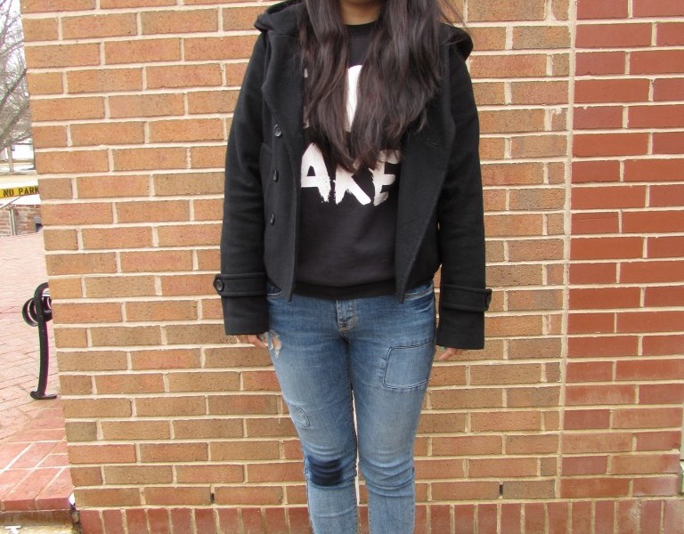 The Fashionista topped her look off with a classic peacoat. This classic cold weather essential is the perfect layering piece to wear to and from the library.