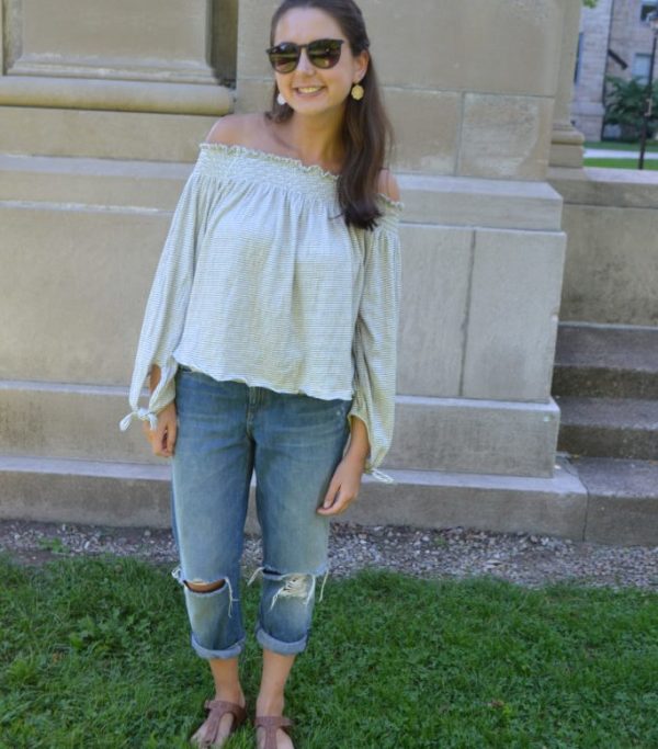 The off-the-shoulder look is something I have never really taken a stab at, so it intrigues me. This Fashionista had a way of making the off-the-shoulder style look not only stylish, but also sophisticated.