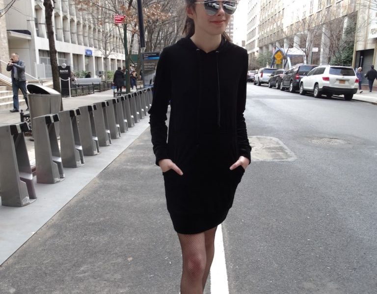 This stylish gal paired fishnets with metallic sneakers. They not only mimicked the glasses, are super in at the moment: Did I mention that a fishnets and sneakers duo is all the rage in street style? This get-up just screams athleisure and can be worn casually or dressed up with a pair of booties. She topped off the ensemble with a velvet hooded tunic. She looks comfortable, chic, and effortlessly cool. The sleek all-black outfit makes the shades “pop,” and when you take them off, you can use them as a mirror. Accent these glasses with jewelry or let these metallic beauties be the star of the show. I have not only seen these shades on campus, but I have seen retailers like ASOS, Forever 21, and Ray-ban sell them. Make your wardrobe shine with this simple accessory this season.