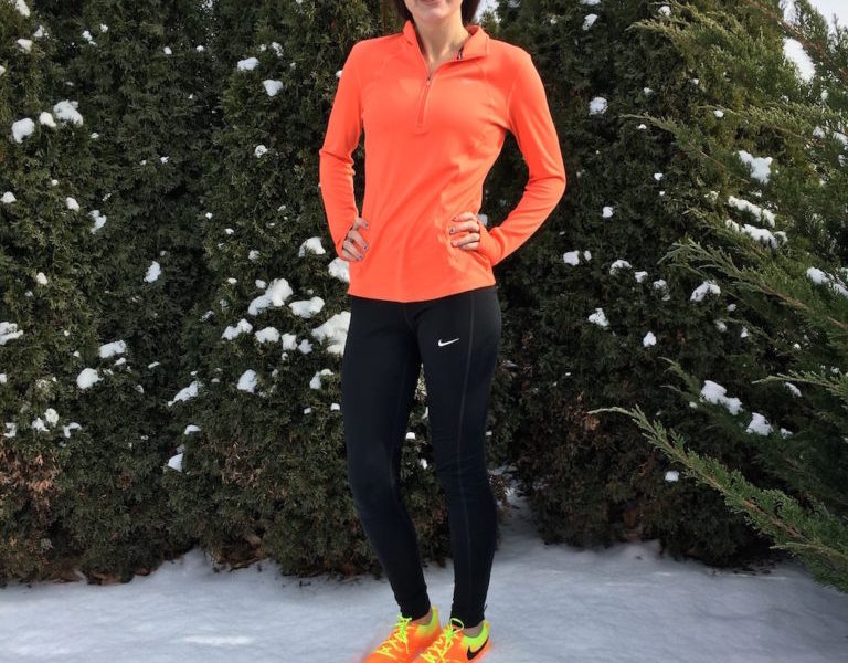 This Fashionista knows how to stay comfortable and warm while breaking a sweat. She loves to run, so light clothing is her go-to. She paired black Nike running leggings with a bright orange quarter-zip top. The bright orange color can be a life-saver, if you are an evening runner! The tighter fitted workout gear is going to keep you warm during your workout. For shoes, this Fashionista chose to match her top with her shoes. She wore bright orange and yellow Nike running shoes. She kept her hair back in a simple braid to keep it out of her face during her run.