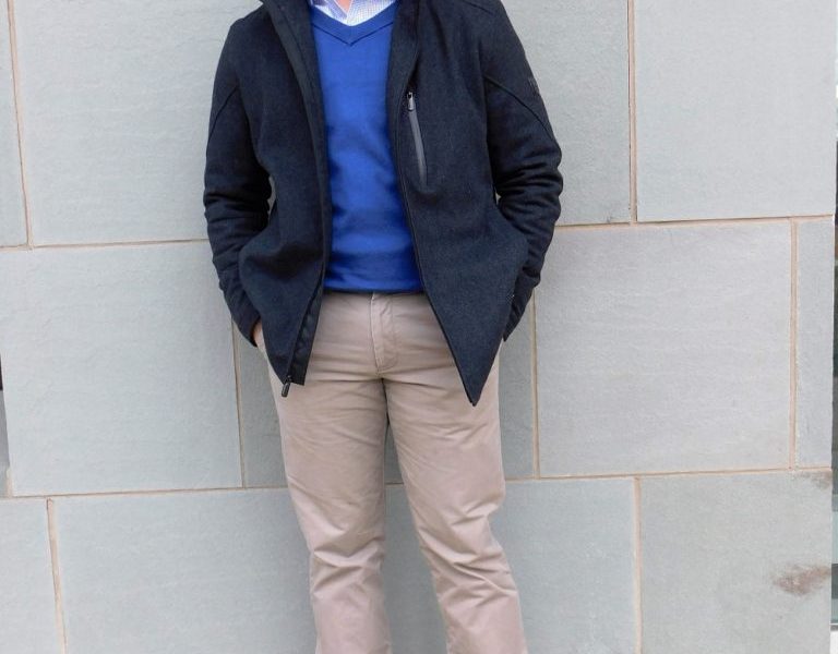 Understandably, college life is hectic. The beginning of the semester comes with much unwanted stress, as we figure out how to juggle multiple responsibilities all day long. On the other hand, new year new you! Pick a killer outfit and conquer all of your obligations in style, like a boss. This Fashionisto found the perfect outfit to wear all day while racing between class, meetings, and work. Ditching a tie and throwing on a royal blue sweater was an excellent choice, making the outfit less formal and more versatile. During this time it’s also important to be aware of the chill in the air, so the gray jacket and boots helped to keep this Fashionisto comfortably warm. The sunglasses, a nice touch, saying I’m a typical tired college student but still cool.
