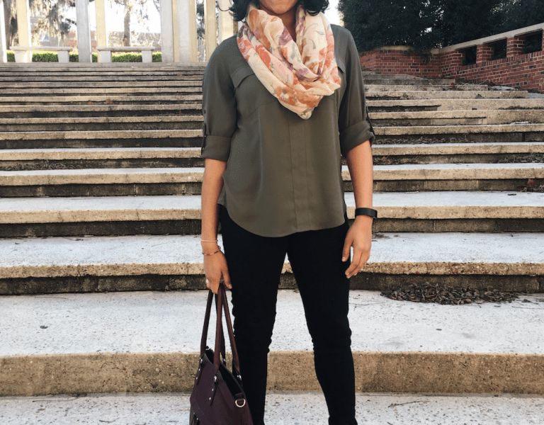 When I tried to find inspiration for a professional wardrobe, this Fashionista immediately came to mind. Over the years, I saw her evolve from a college student to a career woman as she began her professional sequence for music education at Florida State University. For those of you who do not know, the professional sequence is a series of classes designed to prepare you for your teaching internship (which is completed in the final semester) and for your post-grad career as a music educator. It was during this time that I noticed a change in this Fashionista’s wardrobe. She knew that there was a different level of professionalism expected from her as she got further into her college career, so she adjusted accordingly.