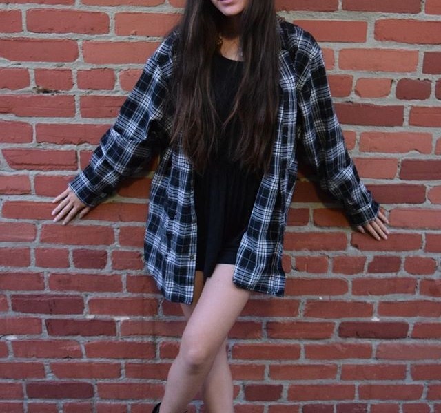 A style that has been in stores such as Forever 21 is the flannel with cute sayings on the back, like this one! It’s perfect for school and definitely gives off that Style Guru vibe. How this Fashionista styles her plaid gives off a completely simple but chic look. The oversized flannel paired over a cute simple black romper conveys a comfortable yet stylish feel. Wearing pieces that can be dressed up (like the romper) with pieces that are dressed down compliment each other extremely well. It’s a perfect outfit to study in the library or go on a coffee break with your friends!