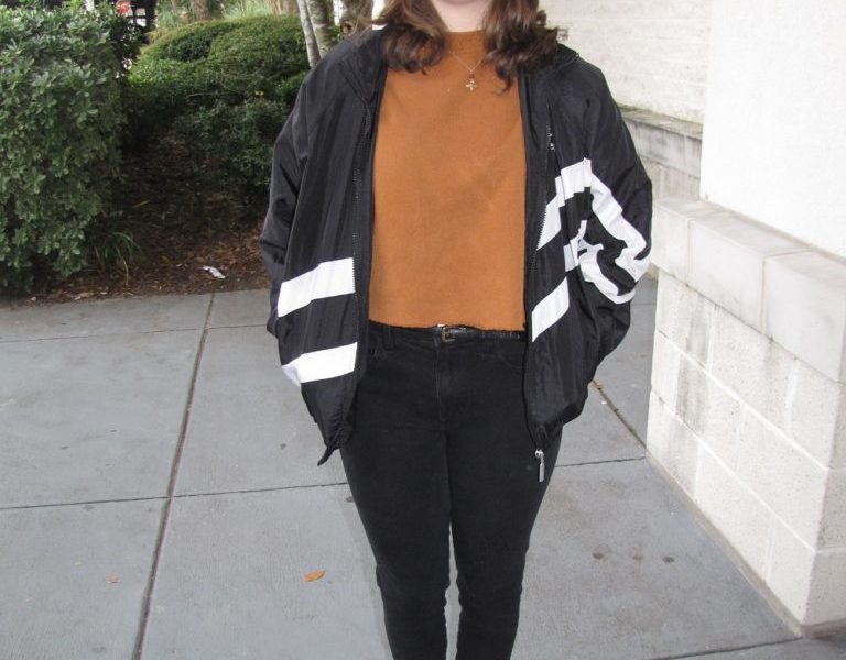 This look is perfect for going to class in the winter months. It’s warm and comfortable, but also compliment worthy. The sneakers are comfortable to walk in and the windbreaker is great for when it rains, which is quite often in Athens. Overall, if you’re tired of going to class in a t-shirt and yoga pants and want to update your look but don’t want to feel uncomfortable, take a cue from this Fashionista.