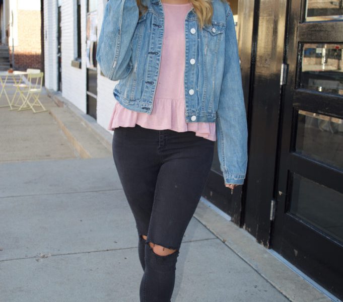 This Fashionista rocks an edgy look that combines a flowy pink top, a denim jacket, black ripped jeans, and chunky black combat boots. But to top everything off, (literally) she throws on a baseball cap with trendy rose stitching to combine that casual “just going to run some errands” look, with a Kendall Jenner “just going to a photoshoot” vibe. After a choker and rings are added, her daytime look is amplified and her personal style shines through.