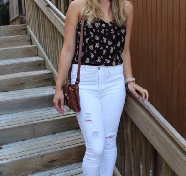 Summer is the best season for a night out between the elegant outdoor seating to perfect weather and scenery. But throwing together a fashionable, but effortless look isn’t always easy. If you’re ever in doubt or you’re stuck in a fashion crisis, white jeans are a perfect way to start your date night outfit. Classier than your favorite pair of ripped light-wash jeans, white jeans are a summer staple. From there you can pair it with a brown or nude wedge, or a lace-up sandal or flat if you want to go a little more casual. This Fashionista completed her outfit with a very summery, floral and lightweight blouse. The open back gives the look a little something extra for the special night out. A short sleeve, off-the-shoulder blouse with either a subtle print or solid color would be a cute alternative to go with these jeans as well.