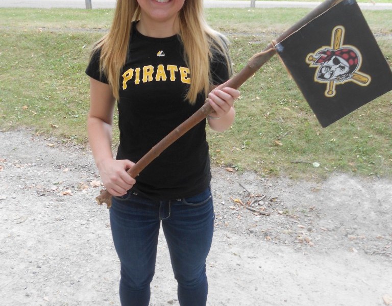 This Fashionista chooses to make her accessories the most important part of her outfit. She decides she wants to stand out from all the other McCUTCHEN jerseys and take her Pirates pride to the next level. Check out this Fashionista’s Jolly Roger. This accessory is unique to the Pirates and can be a stylish way to cheer them on. This Fashionista is displaying a homemade Jolly, so if you decide to support the Pirates you can create a cute one of your own for free!